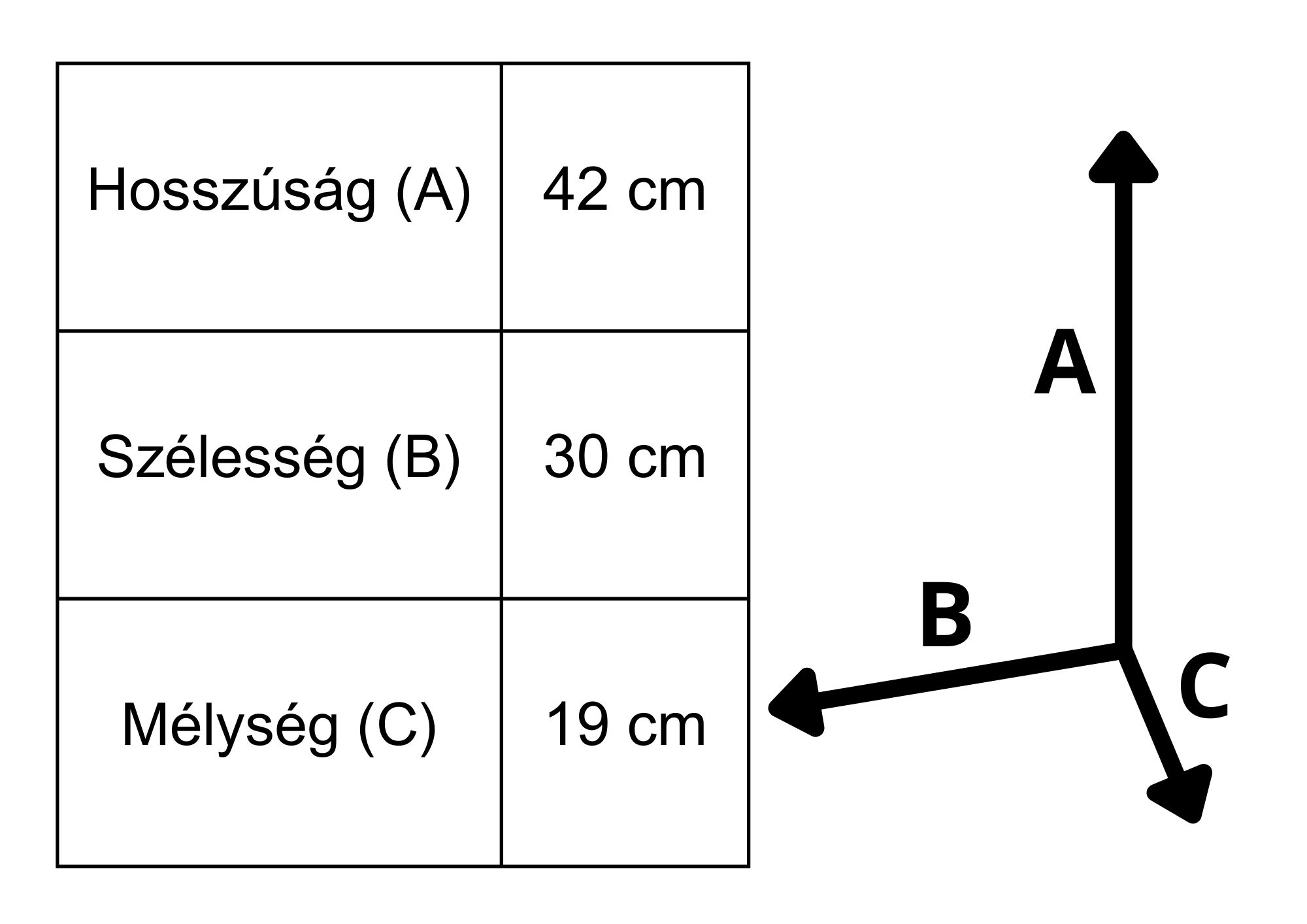 Hosszúság: 42 cm Szélesség: 30 cm Mélység: 19 cm