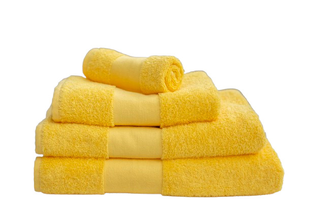 Hímzett PRÉMIUM törölköző 2-3 szavas felirattal + mintával, NAPSÁRGA