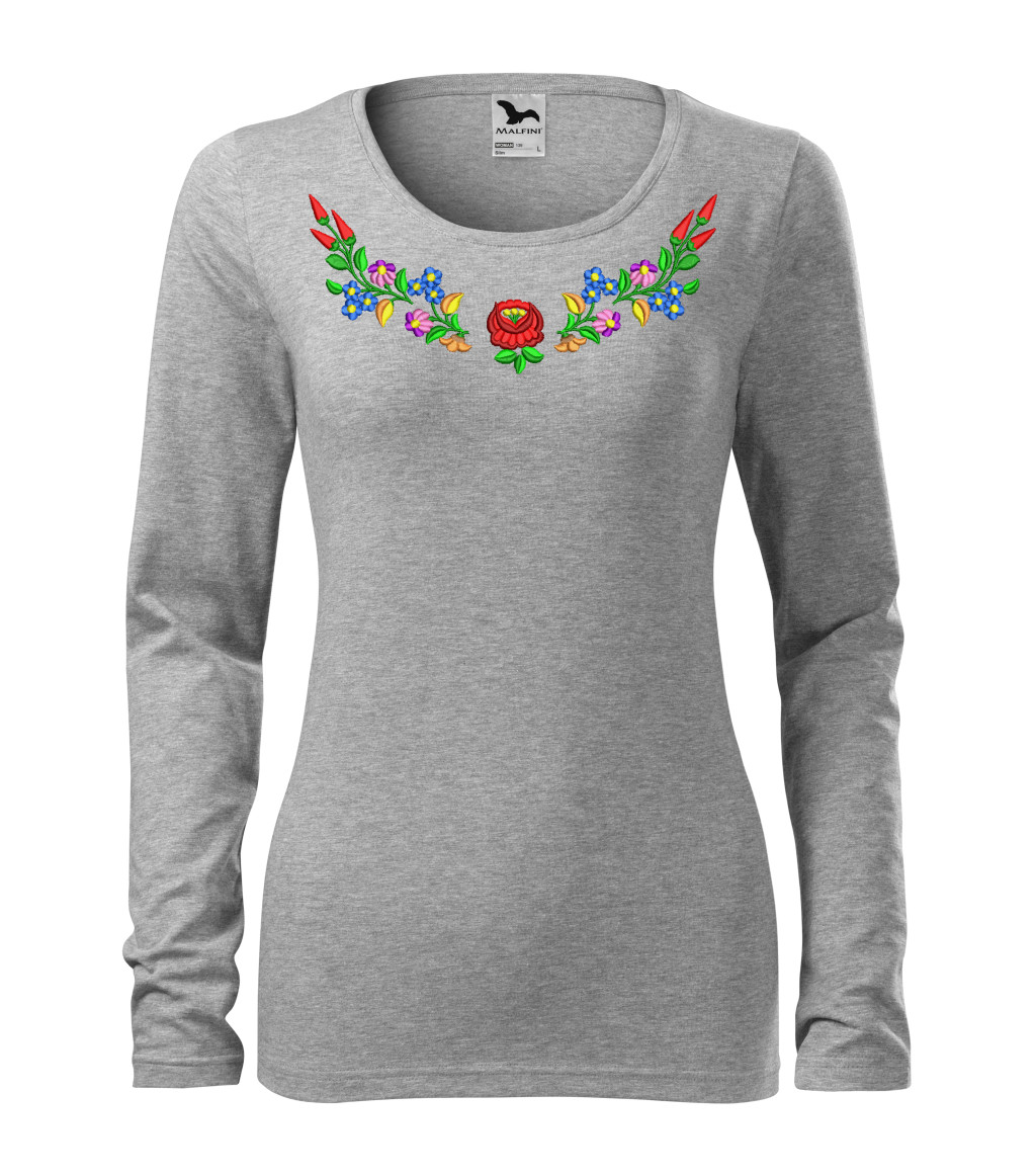 Hímzett, kalocsai mintás női, hosszúujjú póló.