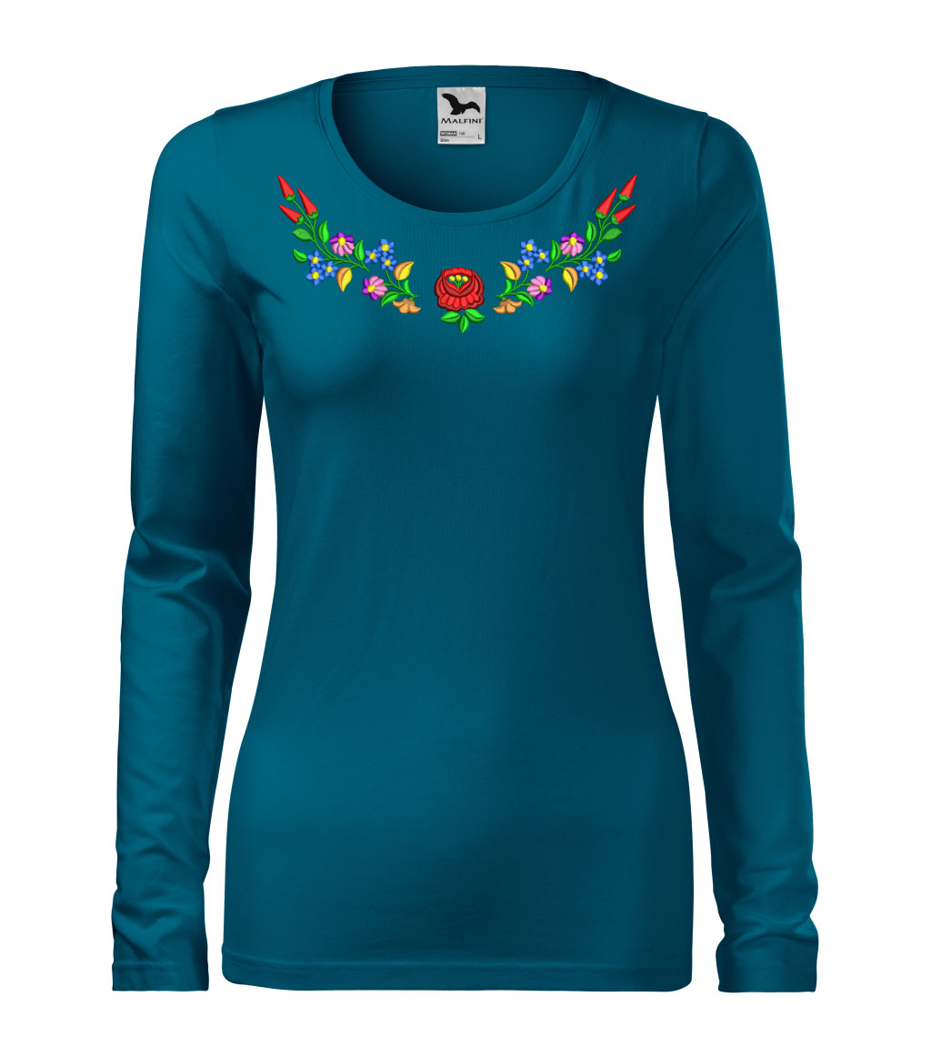 Hímzett, kalocsai mintás női, hosszúujjú póló.